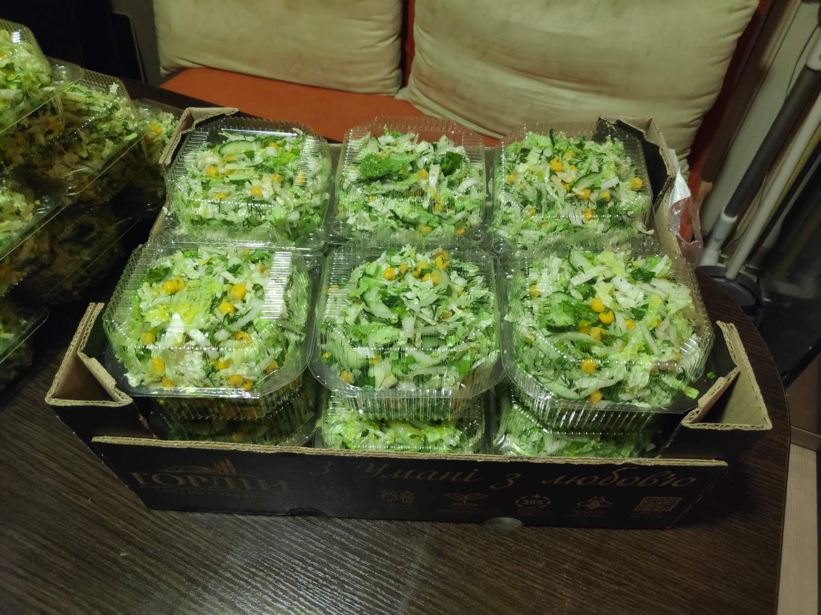 Відчувається, що з любов’ю, соковиті, ароматні. Юрій Ральченко за свої кошти закупив засоби гігієни, воду, овочі, разом з дружиною приготували чудовий сезонний салат для всіх сорока пацієнтів. Лоліта Беселія спекла домашній пиріг з яблучним повидлом. Ірина Коритцева закупила гастрономічні продукти, сюди додалися і смаколики та постільна білизна, що отримані від українців Брюсселя, які нам пересилає час від часу наша волонтерка Валентина Климко. Теплі вовняні шкарпетки нав’язала Христенко Олена, це завжди дуже бажаний подарунок. Все це відвезли до лікарні Ірина Коритцева, Лоліта Беселія та Юрій Ральченко машиною Юрія. Лоліта, як і завжди, доклала руки і 5 хлопців зробила красенями.Велика